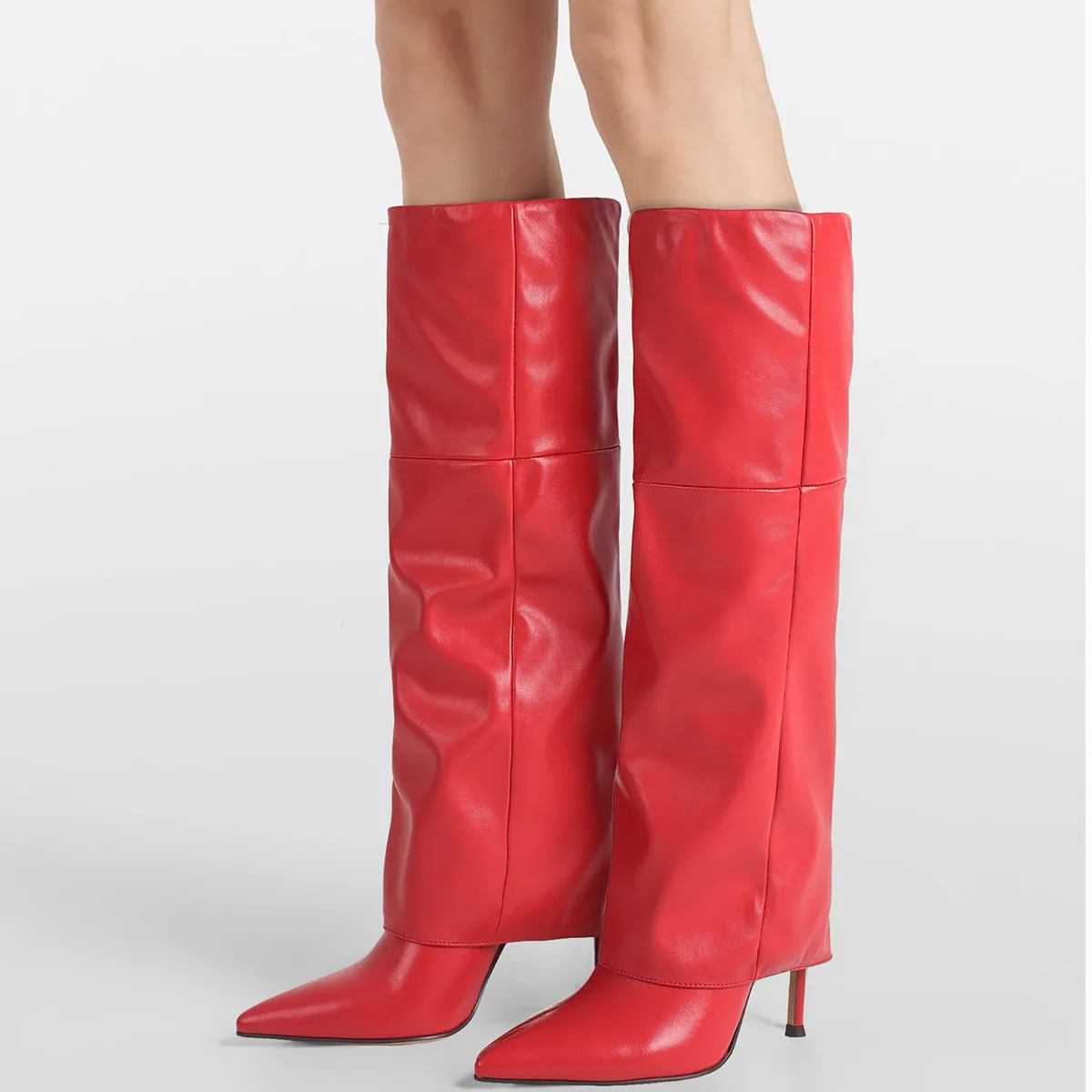 Women's Fold Over Boots Knee High Boots for Women Pointed Toe Stiletto Heel Long Boots Sexy Tall Boots Slip On Fall Winter boots